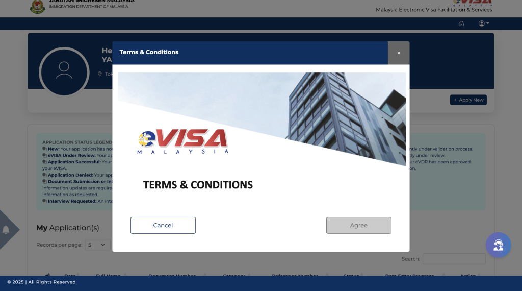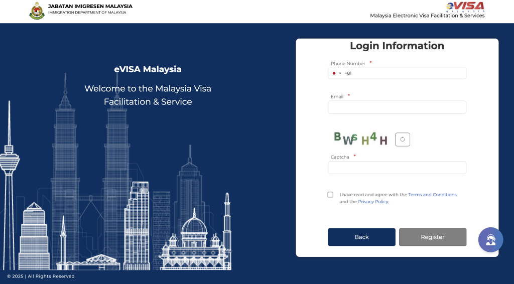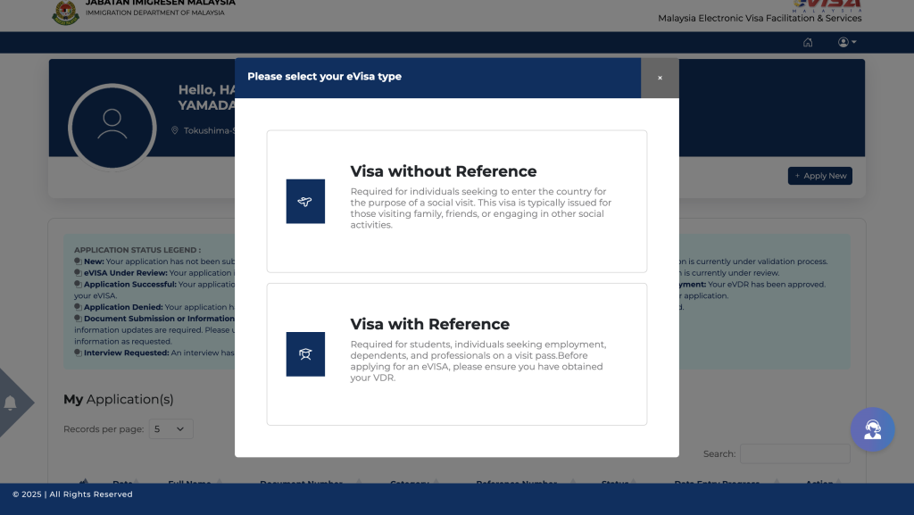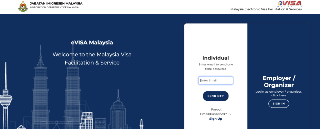 以下に、マレーシア移民局のWebサイトでのSEV申請方法をご案内いたします。
