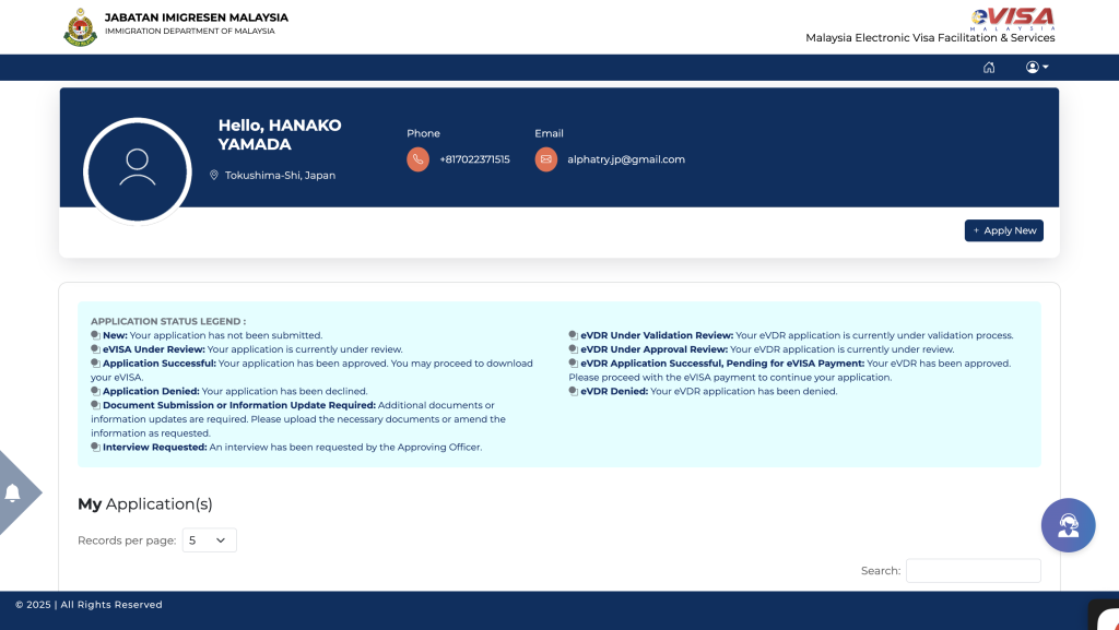 *扶養ビザ申請者がいらっしゃる場合、まずは就労ビザ申請者(主申請者)の情報を記入して提出、後ほど扶養ビザの方の分も同様に「+Apply New」から情報を記入して提出してください。