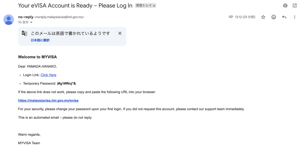 Single Entry Visaが承認がされるとメールでお知らせが届きます。