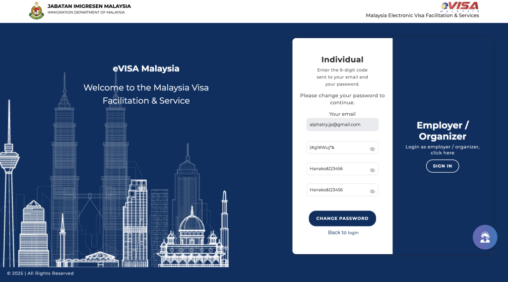 ラブアン法人の就労ビザ(EP)および扶養ビザ(DP)が承認され、召喚状(Calling Letter)が発行されましたら、次にマレーシア移民局のWebサイトより Single Entry Visa(SEV:シングルエントリービザ) の申請を行います。